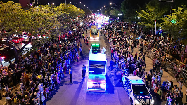 | Ribuan masyarakat Batam saat menyaksikan Pawai Takbiran yang dilepas Walikota Rudi di dataran Engku Hamidah, Selasa (9/4/2024) ( dok Humas BP Batam) |